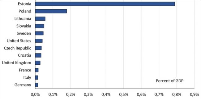Обещанная военная, финансовая и гуманитарная помощь Украины от эстонского правительства находится на уровне почти 0,8% их ВВП.