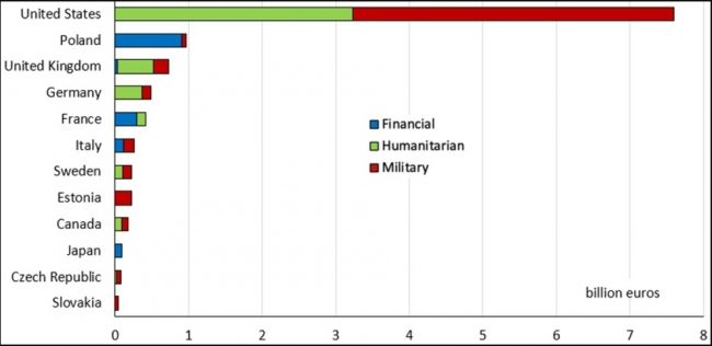США – крупнейший сторонник Украины с эквивалентом 7,6 млрд евро помощи с начала вторжения (данные на 27 марта).
