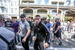До какой степени падения должны были дойти наши моральные ценности, если мальчишки с украинскими фамилиями стоят под плакатом: «Убей в себе украинца! Возродись русичем! Хватит мычать на мове!» Правда, во время драки они кричали своим исключительно: «Пацаны!». Они на самом деле не украинцы, они люмпенизированные пацаны.