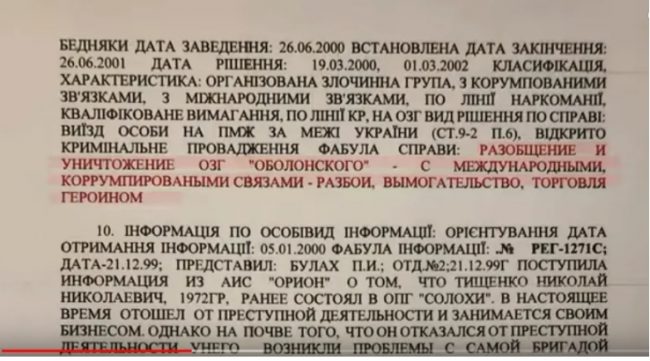 Так, одно из дел было возбуждено с фабулой: «разобщение и уничтожение ОПГ «Оболонского» – с международными, коррумпированными связями – разбои, вымогательство, торговля героином».