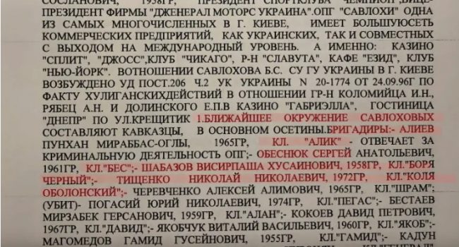 Также, по данным Лероса, Тищенко занимался «реализацией украденных авто, принадлежащих ОПГ Савлохова», и выбивал деньги из должников.