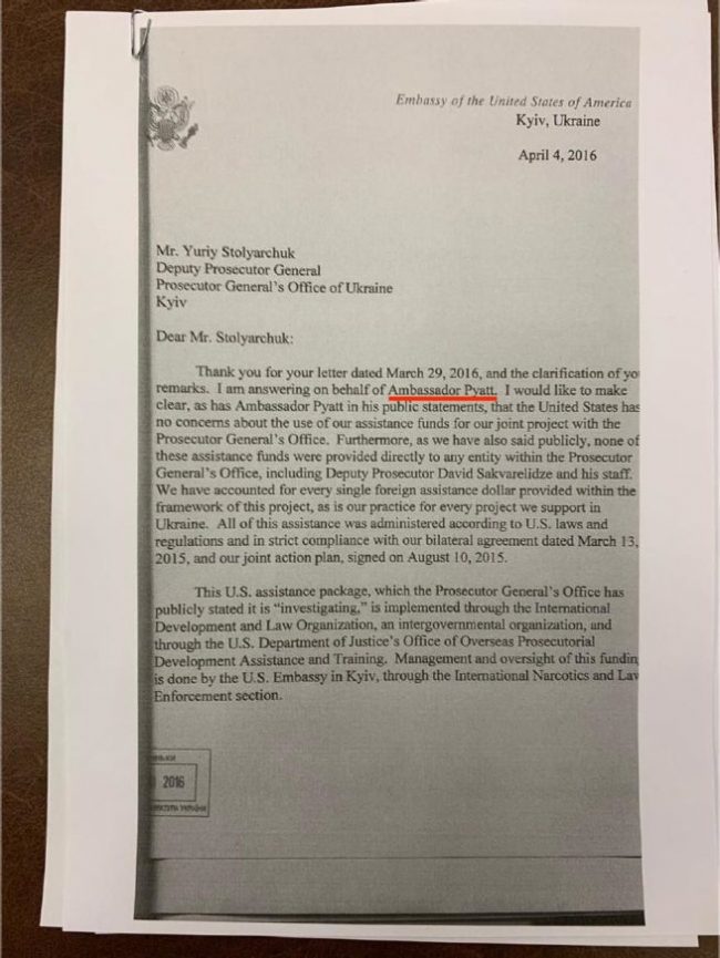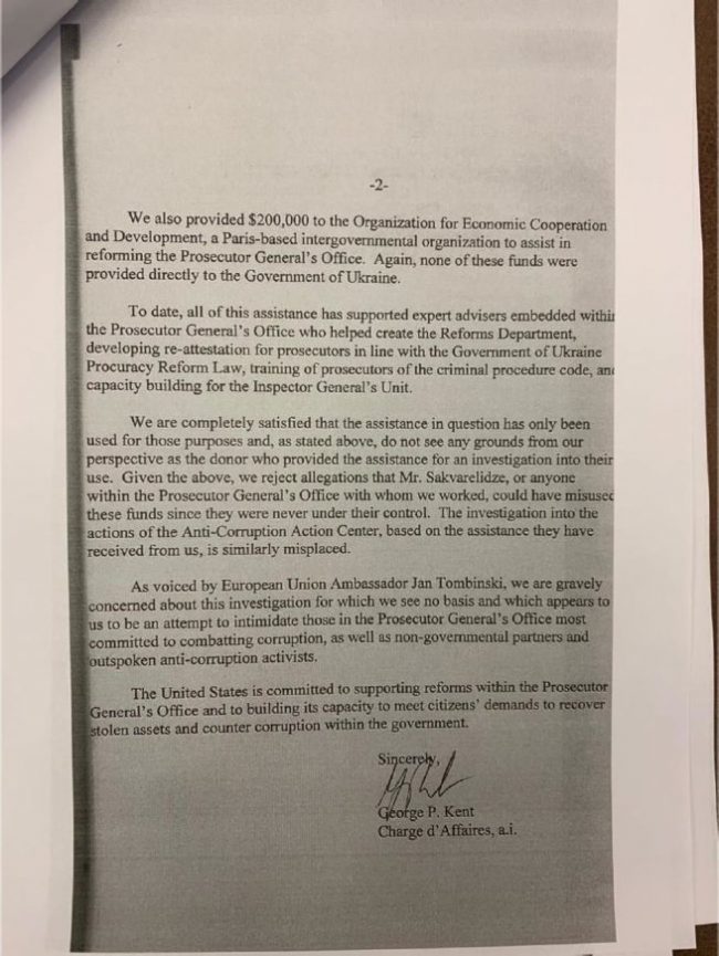 В подтверждение второго обвинения Луценко показывал письмо представителя США относительно дела о присвоении средств.