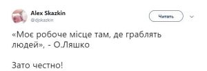 Также в соцсетях подхватили фразу Ляшко: «Мое рабочее место там, где грабят людей».