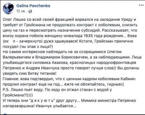 После этого Гройсман дал слово Ляшко, который озвучил требование не продлевать контракт с Коболевым и снизить цену на газ.