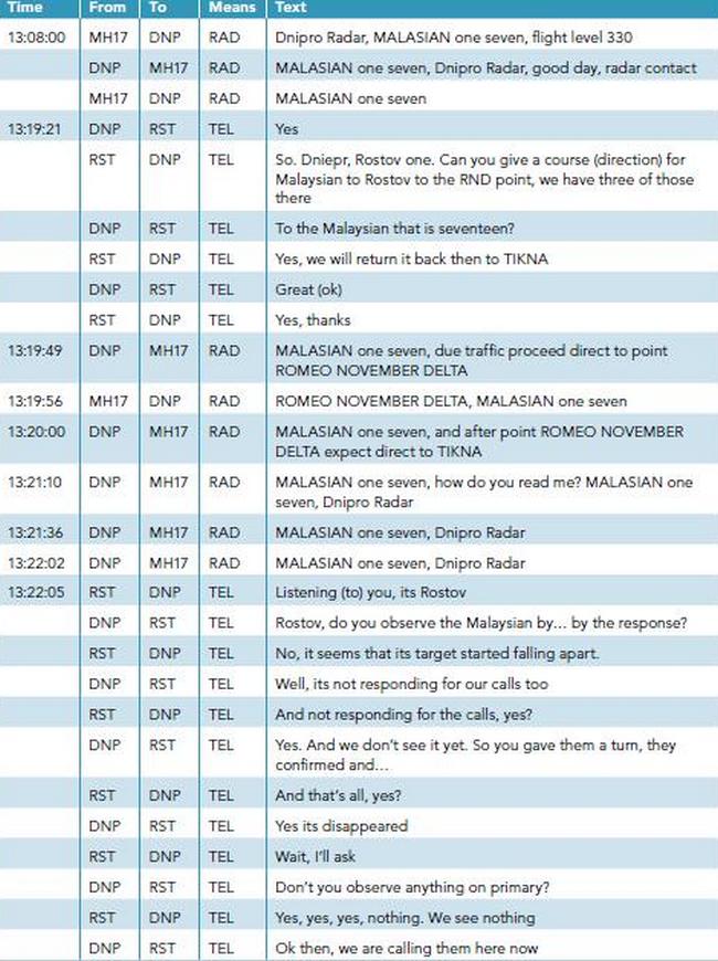 Подробная расшифровка переговоров экипажа MH17 с днепропетровскими DNP и ростовскими (RST) диспетчерами: