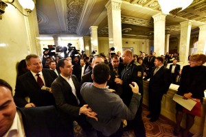После этого депутаты переместились в ту часть кулуаров, где размещается пресс-пойнт для брифингов.