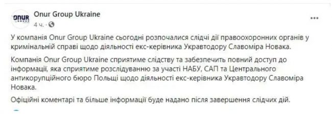 Компания Onur Group Ukraine подтвердила проведение обысков (Facebook Onur Group Ukraine).