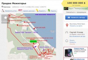 ООО «Танталит» продает 127 гектар земли в Межигорье, под Киевом за 100 миллионов гривен. Такое объявление появилось в интернете на сайте Slando. Подано оно от имени Сергея Клюева.