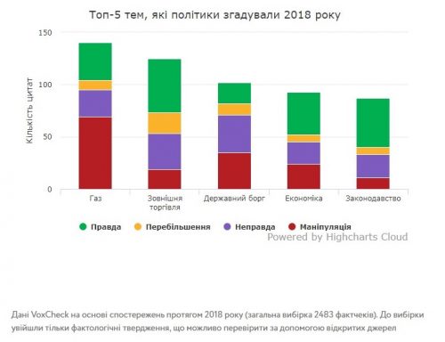 Обычно политики комментируют темы, которые а) в повестке дня б) политически выгодным. В прошлом году оппозиция часто критиковала медицинскую реформу, пока тема топовой в медиа, тогда как в этом году переключилась на стоимость газа, тарифы и долговые обязательства Украины. В то же время также является «вечнозеленые» темы, которые политики комментируют всегда. Состояние экономики — одна из них. В этом, как и в прошлом году, он занимает четвертое место в топ-5 тем. Наиболее упоминаемые темы были фактически и наиболее мифотворческого. По теме медицины, например, также достаточно много врали, но общее количество утверждений была намного меньше.