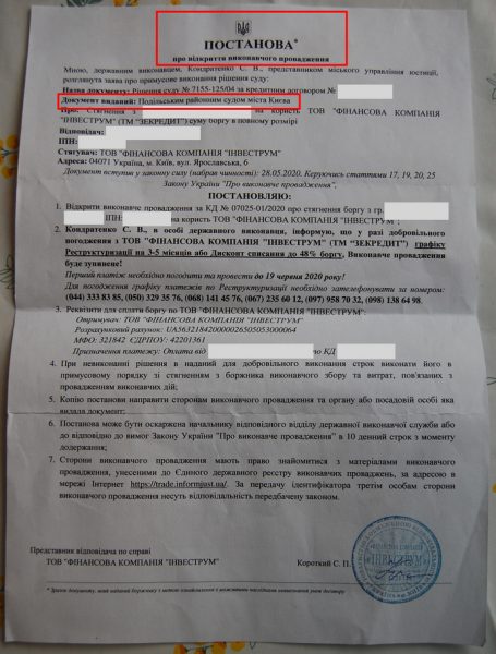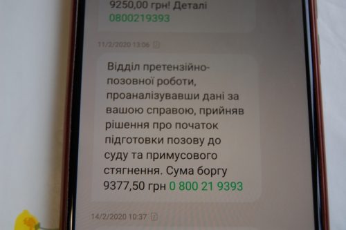 Он узнал о кредите, когда открыл на почте письмо месячной давности. На момент получения письма предприниматель вместе с процентами задолжал сервиса более 12 тыс грн. Сумма долга росла в геометрической прогрессии, утверждал Яковенко.