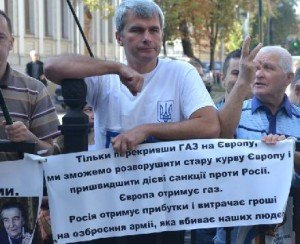 По мнению активистов, Европа зарабатывает деньги на смертях украинцев, а Россия покупает оружие за деньги, полученные от продажи нефти и газа.
