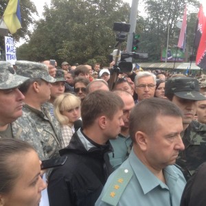 Первоначально митингующие собрались у здания Генштаба, после этого они пошли на Банковую. В список требований входит отправка помощи для украинских батальонов в Иловайск, которые оказались в окружении и отставки министра обороны Валерия Гелетея.