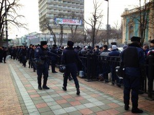 Милиция и ребята "характерной внешности", которые стояли перед кордоном милиции, пытались защитить депутатов. Возникли стычки.