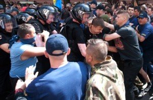 Как известно, группа спортивных молодых людей с Европейской площади, устроили драку с националистами на улице Большая Житомирская в субботу во время митингов. При это милиция бездействовала.