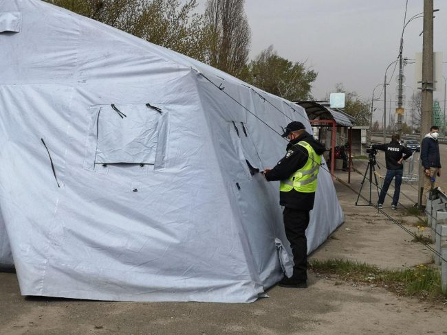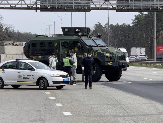 При въезде в Киев установили с десяток стационарных блок-постов для проверки температуры у въезжающих в столицу. Полиция с автоматами и на броневиках готовится с 13:00 приступить к остановке автомобилей — людям с признаками ОРВИ и температурой 37,5 сделают тесты на коронавирус и отправят на самоизоляцию. У кого ОРВИ и температура выше 38 — вызовут скорую.