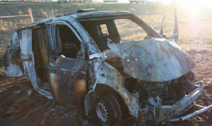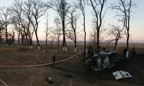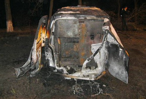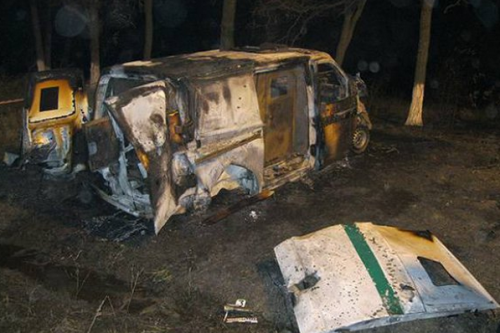 Сегодня в Интернете появились фотографии расстрелянной инкассаторской машины из гранатомета. Ее нашли в пятистах метрах от знака «Днепропетровская область», Царичанский район. От транспортного средства практически ничего не осталось. Также известно о четырех погибших, двое из них работали в УГСО, оставшиеся двое в банке инкассаторами.