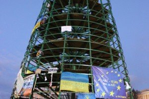 Сегодня на главной площади Киева обнаружили труп человека, повешенного внутри центральной елки Евромайдана.