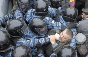 Во время несанкционированного перекрытия движения транспорта на Крещатике возле Печерского районного суда Киева и столкновений с милицией, которые возникли в связи с этим, были задержаны семь митингующих и пять активисток женского движения Femen.