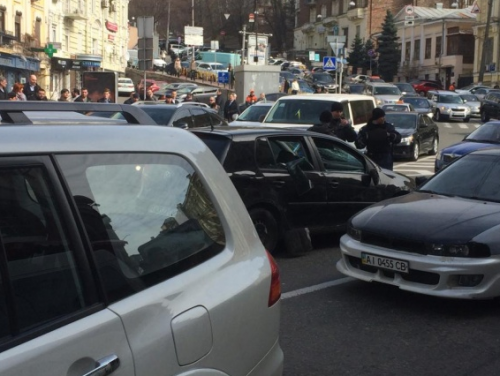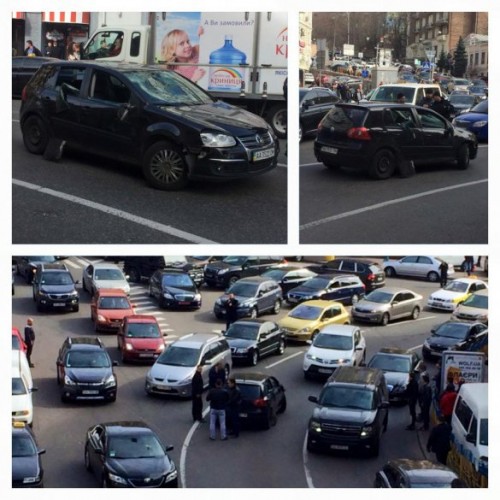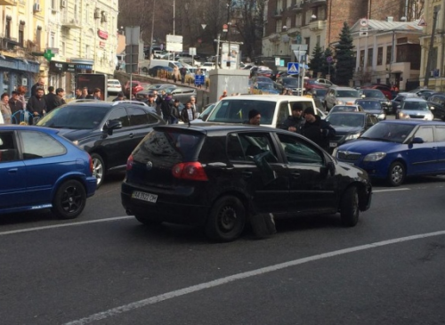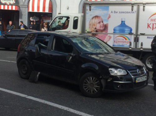 Пользователь Facebook А. Тодорчук написал: "В эти минуты на Бессарабке после побега по встречной полосе был расстрелян автомобиль. Водителя на месте нет".