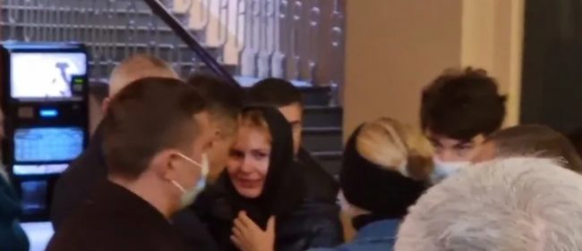 По словам журналистов, после этого вдова вышла на улицу. Тогда как мама Антона Полякова убрала из гроба сына цветы, которые туда положила Скороход.