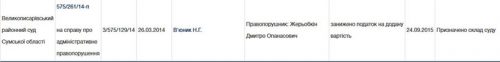 Интересно, что Дмитрий Афанасьевич Жерьобкин был признан виновным в совершении административного правонарушения в 2014 году. В судебном решении говорится, что Дмитрий Афанасьевич периодически занижал суммы уплаты налогов на сумму 430 тыс. Грн. В судебном заседании вину Дмитрий Жерьобкин свою признал. И суд присудил ему штраф «в размере 85 гривен в пользу государства»!