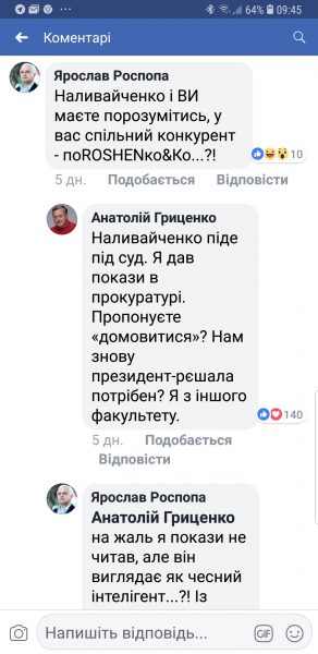 Также в комментариях к собственному посту, Гриценко заявил, что Наливайченко пойдет под суд, поскольку Гриценко уже дал показания в прокуратуре.