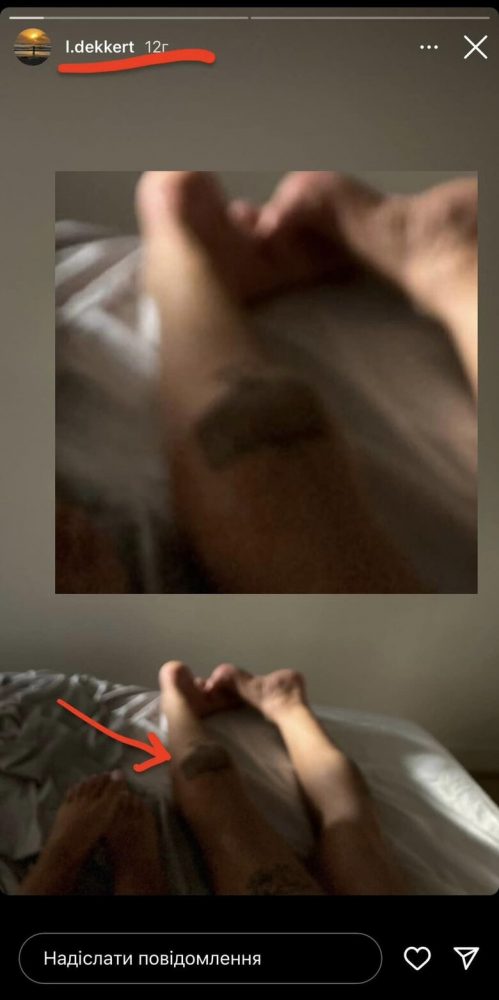 «То есть Дубинский соврал Минздраву, что выезжает в Европу для лечения своего отца. Папа был просто прикрытием. Дубинский поехал в Барселону повидаться со своей девушкой и проверить, как там поживают его выведенные деньги. Его девушка и выложила фото с Дубом в сторис инсты. Вернее с ногой Дуба. На ноге у Дуба заметно татуировку. Перепутать это тату с каким-то другим невозможно. Сторис опубликован вчера (25 июля. – ред.). Девушка живет в Барселоне. И она точно девушка Дубинского», – пишет он.