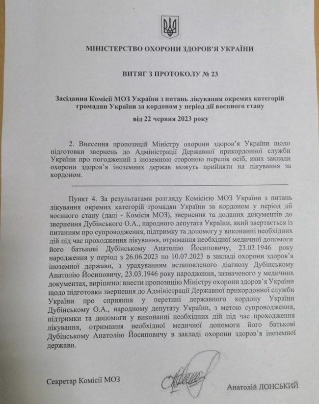 «В связи со сложным диагнозом и отсутствием возможности для лечения отца в Украине, мы вынуждены проводить часть анализов и терапии за рубежом. Для этого мы обратились в Минздрав со всеми подтверждающими документами и получили право выехать», — написал политик.