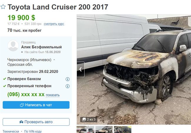 Самые дешевые Land Cruiser, которые нам удалось найти в продаже — автомобили с очень серьезными повреждениями, в частности после пожара — стоят не менее 500 тыс. грн. Аналогичные авто на ходу — от 1,5 млн грн.