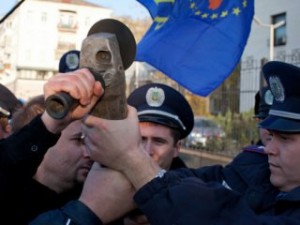 Как передает корреспондент "Интерфакс-Украина", участники акции держат в руках плакаты с надписями: "Не отдадим Кремлю наш суверенитет!", "Прочь российский империализм!", "Москва, покайся!", а также флаги ВО "Свобода", Народного Руха Украины, Конгресса украинских националистов, а также государственные флаги.