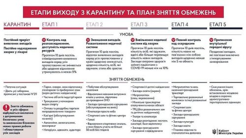 Планируется, что второй этап смягчения карантина, который намерены внедрить с 22 мая, коснется спортивных соревнований, работы гостиниц и проведения внешнего независимого тестирования (ВНО). Тем временем 18 мая количество выявленных случаев заболевания коронавирусной инфекцией COVID-19 в Украине увеличилось на 260 до 18 876, количество умерших от заболевания — на 13 человек до 548 по сравнению с предыдущими сутками, при этом количество новых случаев снизилось на 20%, количество новых летальных случаев — на 38,1%.