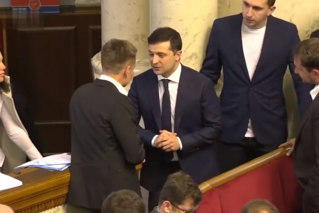 Их разговор произошел вскоре после того, как представители фракций «Голос» и «Европейская Солидарность» пообщались возле президиума Рады с Зеленским, Разумковым и Стефанчуком. Тогда фракции настаивали на необходимости голосовать за состав Кабмина поименно, а не «пакетом» (как в итоге и произошло).