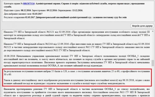Провал аттестации, сокращение должности, несмотря на все это Запорожские суды вновь и вновь восстанавливают одиозного милиционера в должности. Значит его навыки в недореформированной полиции кому-то очень нужны?