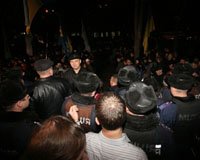 Фотокорреспондент ForUm’а Максим Требухов и его коллега из издания «Левый берег» вели съемку с места событий. В частности, возле окружкома они засняли десяток автобусов с логотипами «Эпицентра». После того как фотокор ForUm’а и его коллега подошли к автобусам, из дверей которых им навстречу вышло около десятка мужчин спортивного телосложения в кожаных куртках и плотных капюшонах на головах, неизвестные в грубой форме потребовали у фотографов предъявить документы, что те и сделали. Когда же фотокоры попросили мужчин представиться, те применили против нашего сотрудника и его коллеги слезоточивый газ. Как рассказал Максим Требухов, неизвестные распылили жидкий газ, которым пользуются сотрудники МВД.
