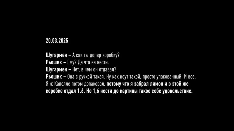 Так, в разговоре от 20 марта Шугармен интересовался у Решика: «А как ты допер коробку?». Тот говорит, что деньги ему передали в коробке с ручкой, чтобы можно было нести.