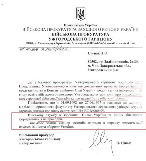 Однако, именно случай с Цыцаком вызвал наибольшее возмущение. Он ни дня не служил в армии. Вдруг в июне 2015 года поступил в военную прокуратуру и непонятно на каких основаниях ему сразу было присвоено воинское звание «майор юстиции», хотя до этого он даже рядовым солдатом не был. И в прокуратуре тоже никогда не работал, чтобы получить воинское звание в порядке переаттестации.