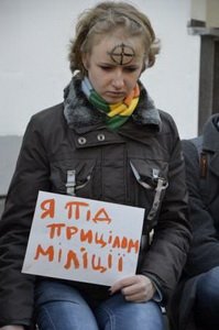 Учасники мітингу малювали один одному на чолі оптичні приціли й тримали у руках таблички «Я під прицілом міліції», «Ти під прицілом міліції», говорячи, що кожен не застрахований від міліцейського свавілля.