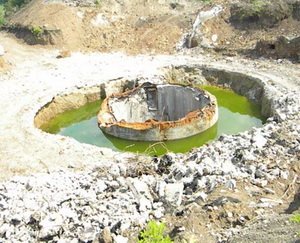 Корреспондент «Комментариев» побывал в Николаевской области, чтобы увидеть своими глазами размах работ местных «металлистов». Сначала было даже сложно полностью оценить объем разворованного. Спецтехника буквально карьерным способом откапывала ствол шахты, после чего из бетона, словно изюм из пудинга, вынимались все металлические конструкции. Образовался настоящий карьер, который, очевидно, будет только углубляться, ведь чтобы вытянуть весь металл нужно выкопать шахту до конца (а это 40-45 метров). Трудно представить прибыли «черных» металлистов: из одной только крышки можно вытащить несколько тонн высококачественного железа. Посчитать же вес ствола вряд ли вообще представляется возможным. А что говорить, если только в двух районах Николаевской области таких шахт насчитывается более двадцати.