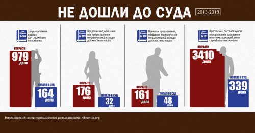Для того чтобы понять, сколько коррупционеров понесли реальное наказание за взяточничество, а кто из них оказался на свободе или даже продолжает занимать свои должности, мы отправили несколько информационных запросов – в полицию и прокуратуру. Нас интересовали общие показатели – количество зарегистрированных производств, сколько из них были переданы в суд и какие решения по ним судом были приняты.