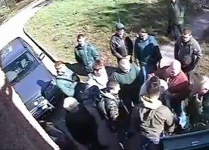 Все происходящее зафиксировала видеокамера. Глава Николаевской «Свободы» Игорь Деревянко – в бежевой куртке с капюшоном, ногами пинал менеджера магазина «Охота». Когда приехали правоохранители, депутат с помощниками скрылись в неизвестном направлении.