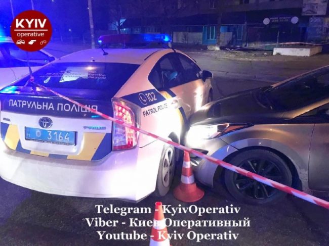 По информации «Киев оперативный», патрульные использовали табельное оружие, понимая, что водитель не собирается останавливаться и «идет на таран». Водитель затормозил прямо в патрульную Toyota, а затем достал пистолет «и совершил еще один выстрел».