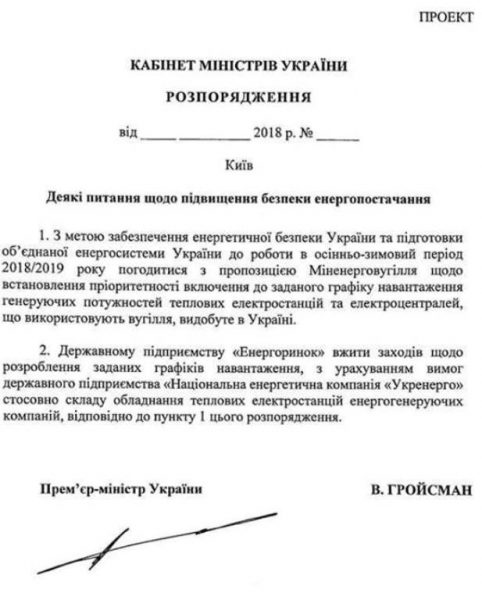 Новым Распоряжением правительства министр Носилки предлагает очень примитивную вещь. Допустим, что блоки ТЭС, работающие на марке Г, будут выставлять ценовую заявку по 10000 грн/т. А электростанции, работающие на антраците, будут выставлять заявки по 2000 грн/т.