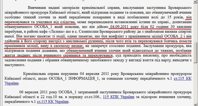 В селе Семиполки Броварского района Киевской области 35-летний Виталий Запорожец расстрелял из охотничьего ружья начальника Калитянского поселкового участка милиции Николая Симоненко.