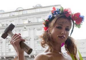 9 августа, в Киеве женское движение FEMEN провело топлес-акцию под стенами здания Службы Безопасности Украины в ответ на действия СБУ в отношении расследования фактов давления на активисток FEMEN.