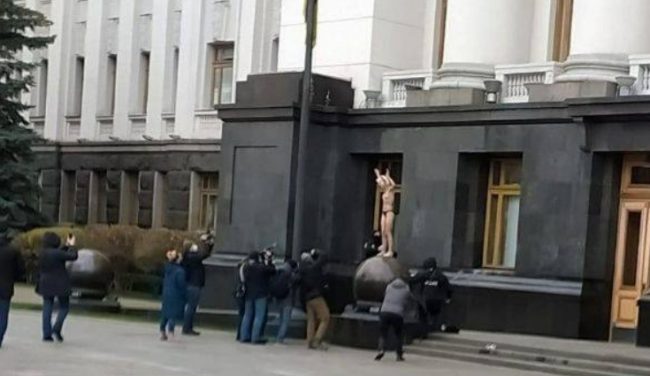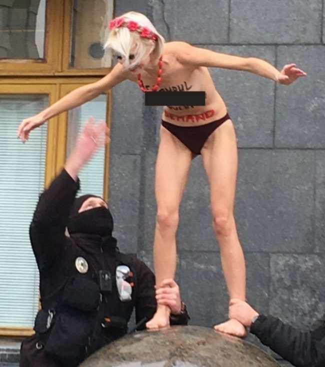 В Киеве возле Офиса президента 25 ноября 32-летняя активистка пыталась провести «голую» акцию протеста.