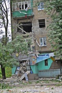 Снаряд попал в подъезд дома №18 на квартале Заречный.