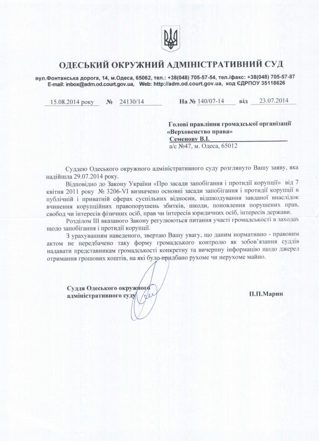 Одесский судья Петр Марин: декларация о доходах