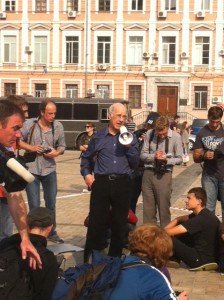 Феерическая картинка. На площади Богдана Хмельницкого выступает профессор Калифорнийского университета Майкл Боровой. Выступает перед украинскими студентами, которых только что метелили украинские менты. Студенты сидят на площади, менты стоят вокруг. И слушают. Может и поймут что-то?