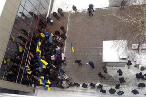 Около полусотни людей заблокировали входы в представительство ЕС в Киеве