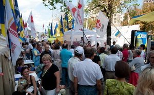 Организаторами народного марша по случаю Дня независимости Украины стали: ВО "Батьківщина", Европейская партия "За Украину!", "Народная самооборона", "Наша Украина", Народный Рух Украины, партия "Реформы и порядок", Партия защитников отечества, ВО "Свобода", "Фронт змін" и др.